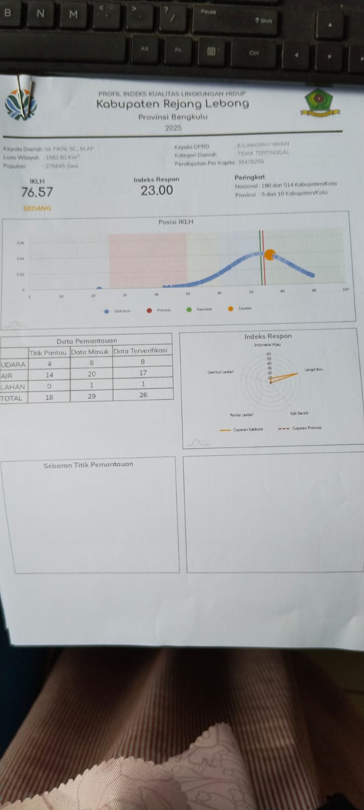 data pemantauan dan titik Pantau hasil dari indeks Respon 23.00 IKLH : 76.57